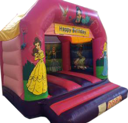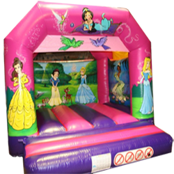 A MEDIUM SIZED DELIGHTFUL PRINCESS THEMED BOUNCY CASTLE WITH BEAUTIFUL HAND-PAINTED ARTWORK. A MUST HAVE FOR ANY BUDDING PRINCESSES PARTY.