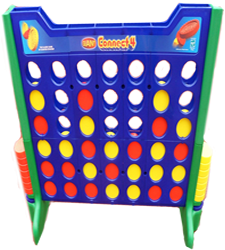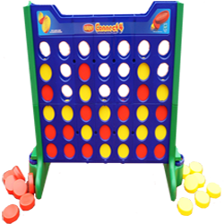 Take turns to drop your counters into the frame to try to form a line of four and stop your opponent from doing the same.